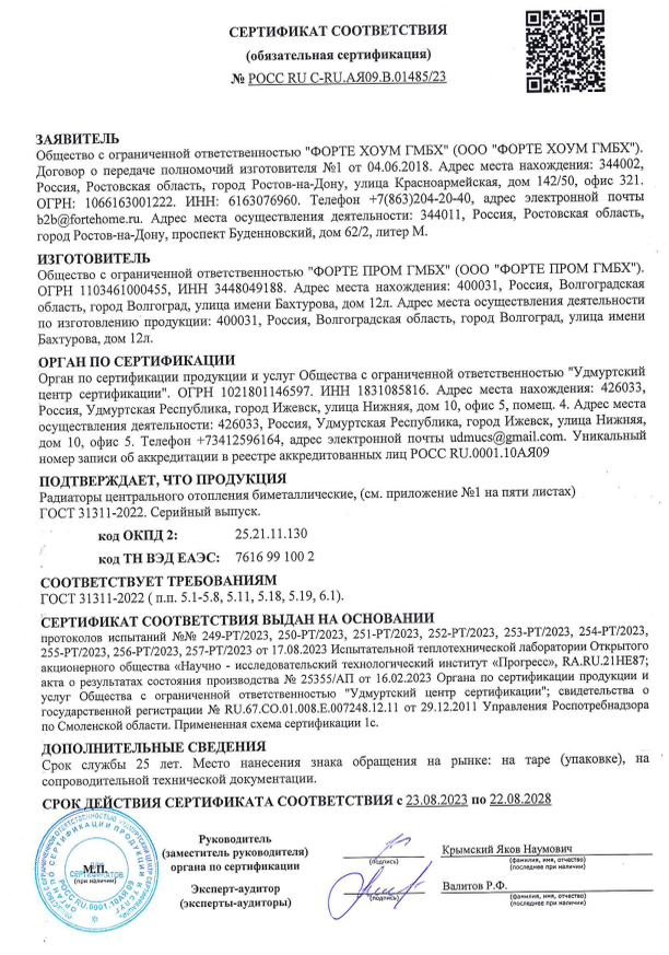 «Forte Prom GmbH» - отечественное предприятие, один из крупнейших заводов по производству алюминиевых и биметаллических радиаторов отопления в России. Технологическое оснащение завода включает восемь современных литьевых комплексов, две итальянские линии механической обработки, высокопроизводительную автоматическую линию покраски туннельного типа, упаковочный цех. Производство на предприятии автоматизировано до 95%. Продукция завода удостоена звания «100 лучших товаров России».