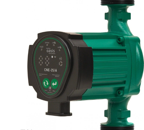 Циркуляционный насос Oasis CNE-25/6 станет отличным выбором для эффективного трансфера воды в системах кондиционирования, а также в отопительных системах загородных и частных домов. Основой модели является центробежный двигатель мощностью 45 Вт, который может обеспечить производительность до 50 л/мин при напоре до 6 м. Все движущиеся части насоса, в том числе и ротор, омываются перекачиваемой жидкостью. Благодаря этому обеспечивается эффективное охлаждение, что увеличивает срок службы прибора. Рабочее колесо и подшипники модели изготовлены из специального пластика, устойчивого к коррозии и повреждениям. Еще одной особенностью электродвигателя также является наличие изоляции класса F, что дополнительно обеспечивает безопасность использования.