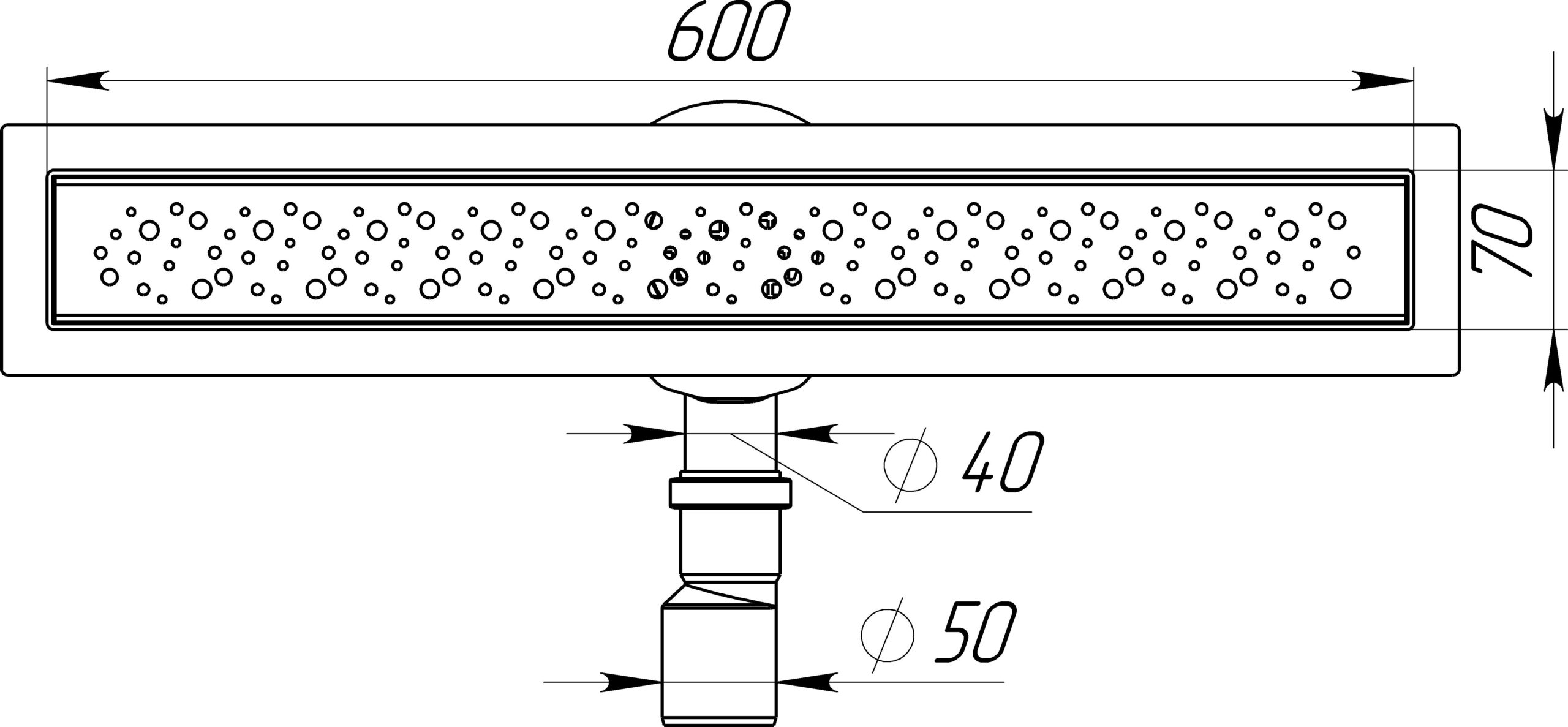 Aquant Трап для душа линейный 600х70мм с глянцевой мет.реш., сухой затвор, выход под 40/50мм