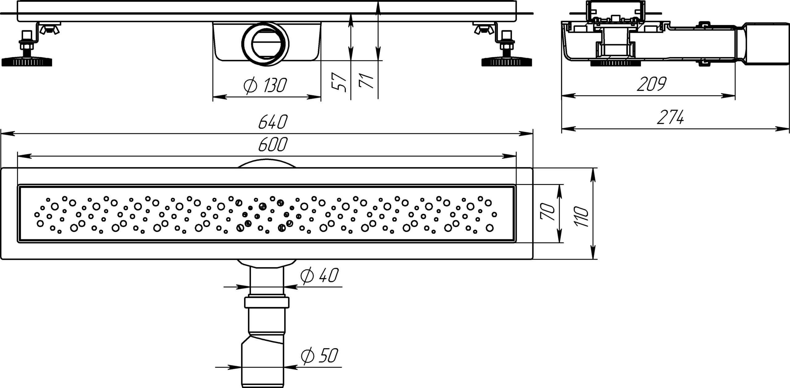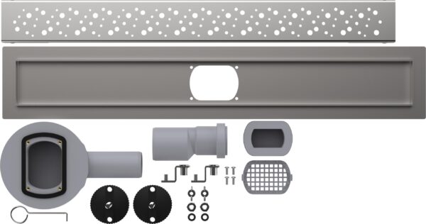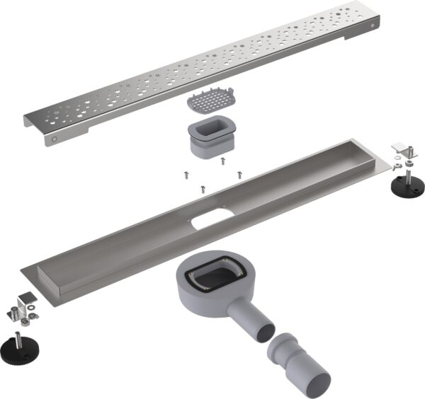 Линейный трап с классической длиной декоративной решетки 60 см идеально подходит для оборудования душевых комнат, при этом качество работы слива не зависит от длины лотка и остается одинаковым на трапах от 30 до 100см. Линейные трапы предназначены для отвода стоков воды из душа с уровня пола. Линейные трапы Aqunat оборудованы «сухим» затвором, препятствующим попаданию запахов канализации в помещение даже при редком использовании душа. Идеально подходит для использования совместно с устройством «теплого пола», который быстро высушивает гидрозатвор. Линейные трапы отличаются повышенной пропускной способностью слива, до 45л/мин. Конструкция состоит из металлического душевого лотка на регулируемых ножках, коробки «сухого затвора» с трубкой отвода с переходником на 40/50мм и декоративной металлической решетки. Упакован в прозрачный блистер.