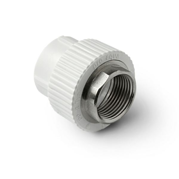 Полипропиленовая комбинированная муфта PRO AQUA с внутренней резьбой под ключ используется при соединении полипропиленовых и металлических участков трубопровода в системах водоснабжения и отопления. Металлический элемент изготовлен из европейской латуни CW617N, корпус выполнен из полипропилена. Данный фитинг обеспечивает герметичное резьбовое соединение и срок эксплуатации составляет не менее 50 лет. Конструкция муфты включает открытый металлический (стальной) участок для использования ключа.